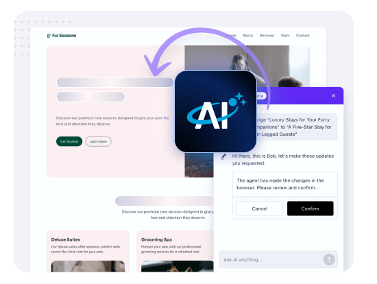 Non è necessario conoscere design o programmazione. La nostra AI si occupa della parte tecnica, così puoi concentrarti su ciò che sai fare. In questo modo puoi crescere, sapendo che il tuo sito è in buone mani.